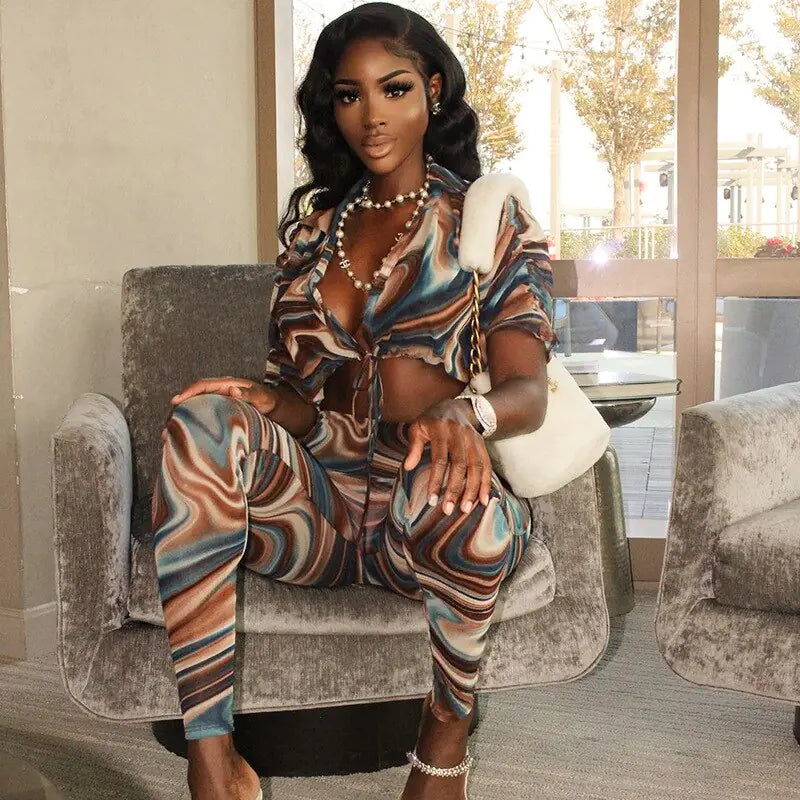Step into the forefront of fashion with our trend-setting 2 Piece Set Abstract Print Sheer Mesh Outfits! Embrace individuality with a range of captivating designs, each crafted from sheer mesh fabric for a contemporary and alluring appeal. The abstract prints boast bold shapes and vibrant hues, injecting life into any ensemble. With a breathable and lightweight construction, these outfits offer a snug yet comfortable fit that allows for effortless movement. Whether you're hitting the town for a night out or lounging at home in style, our mesh outfits guarantee to command attention wherever you roam. Make a bold fashion statement today with our 2 Piece Set Abstract Print Sheer Mesh Outfits—because confidence never goes out of style!