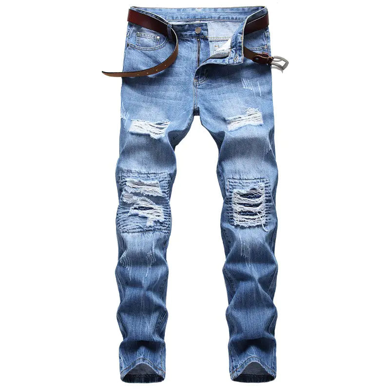 Elevate your casual wardrobe with our Men Ripped Jeans Pants, crafted from high-quality denim that promises not only comfort but also style. Designed to be worn through all four seasons, these jeans are a versatile addition to any outfit.