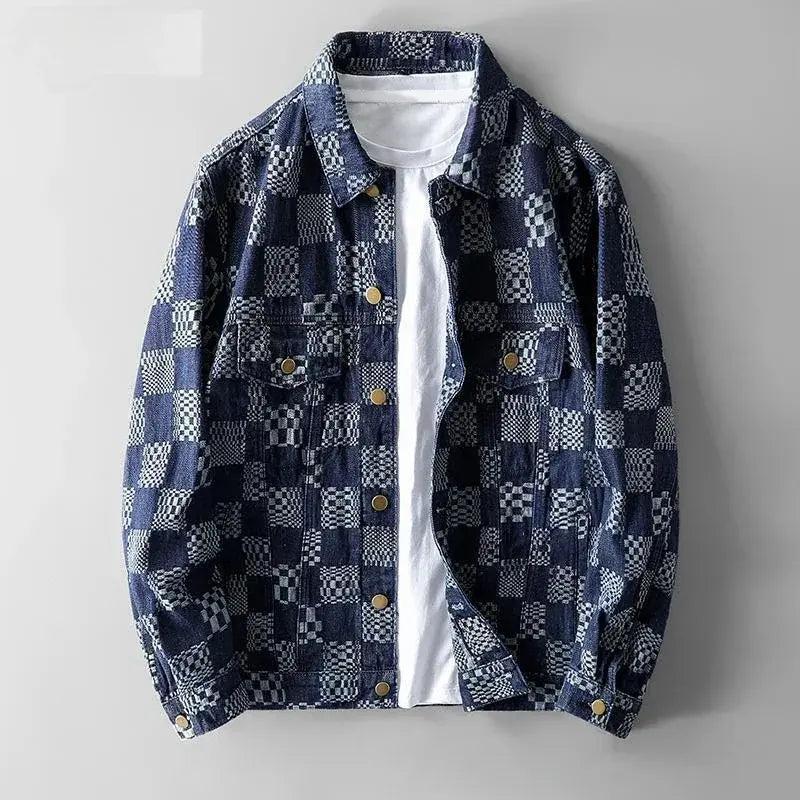 Whether you're heading to a casual hangout or a night out, this denim jacket is your go-to choice. Its tailored fit and thoughtful design elements, including the blue denim and plaid details, ensure you look sharp and feel comfortable in any setting.