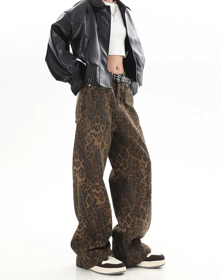 Step out in style and confidence with these vintage leopard jeans. Their bold print and classic fit make a statement, ensuring you stand out and express your unique personality with every wear.
