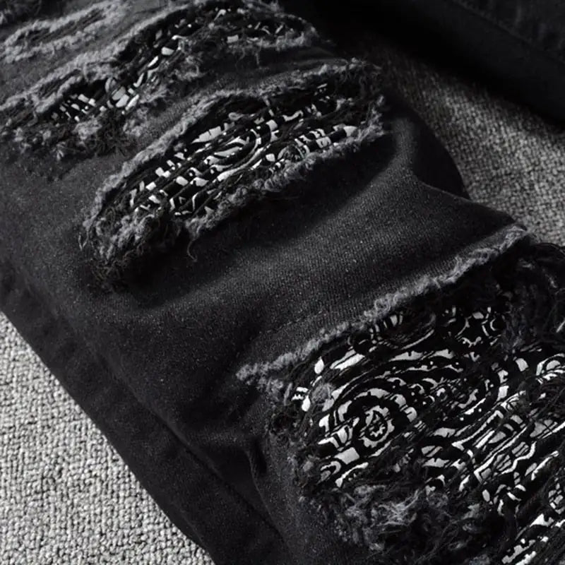 Schwarze zerrissene Bandanna-Jeans