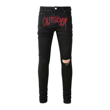 - Gehen Sie Ihren eigenen Weg und zeigen Sie Ihren einzigartigen Sinn für Stil mit unseren zerfetzten Skinny Jeans mit „Life of an Outsider“-Print. Diese Jeans wurde für den furchtlosen Einzelgänger in Ihnen entworfen und strahlt Selbstbewusstsein und Haltung aus. Wagen Sie es, sich abzuheben und zeigen Sie Ihre Individualität mit jedem Tragen.