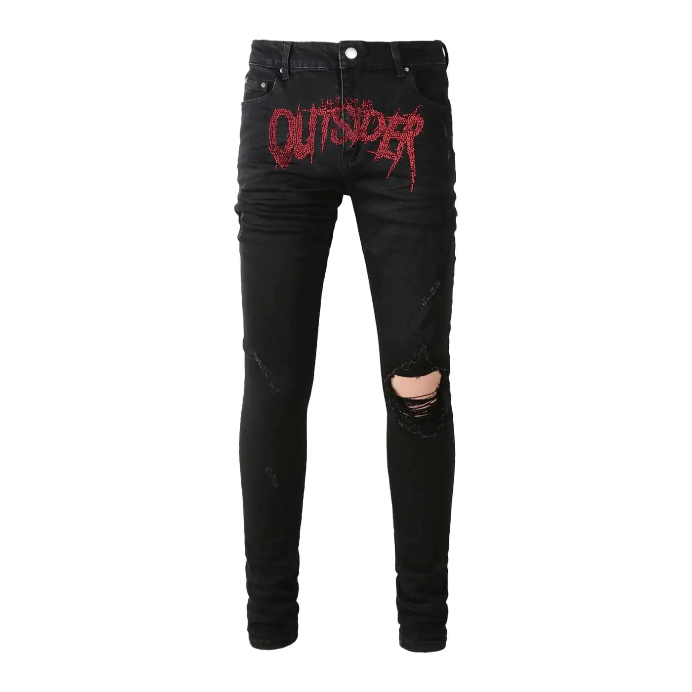 - Hinterlassen Sie einen bleibenden Eindruck mit unseren zerfetzten Skinny Jeans mit „Life of an Outsider“-Print, Ihrem Ticket zu müheloser Coolness. Egal, ob Sie auf der Straße unterwegs sind oder mit Freunden abhängen, diese Jeans bieten unvergleichlichen Komfort und Stil. Genießen Sie die entspannte Atmosphäre und lassen Sie Ihre Persönlichkeit in jedem Outfit durchscheinen.