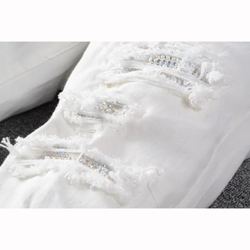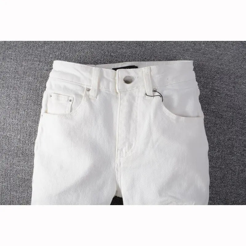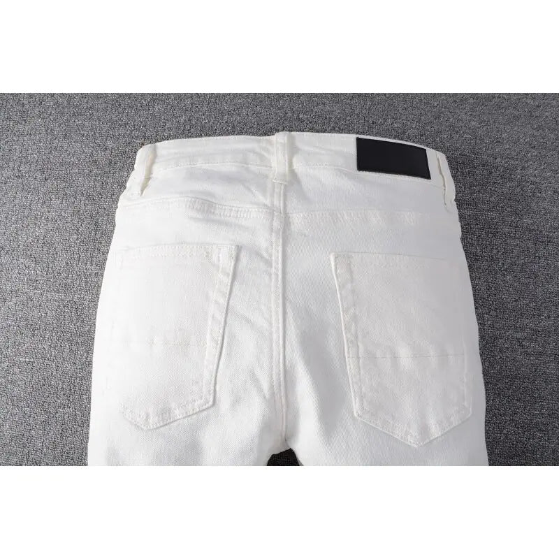 Weiße High Skinny Stretch Slim Fit Jeans für Herren mit Rissen