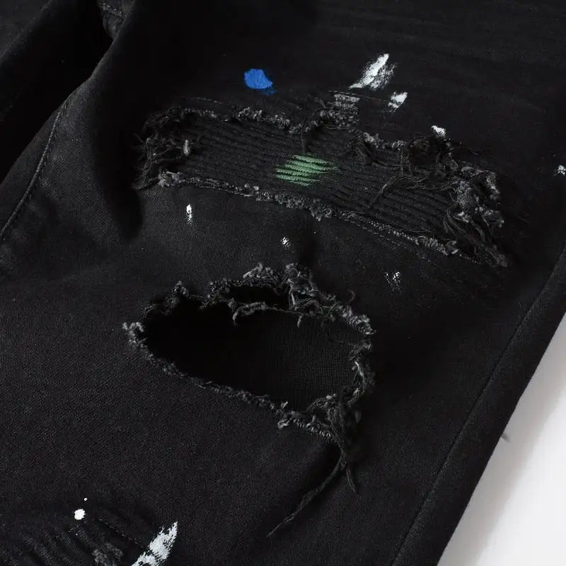 Mejora tu estilo al instante con nuestros jeans rotos y pintados. Prepárate para ser el centro de atención y recibir elogios por tu estilo sobresaliente. ¡Mejora tu guardarropa con estos jeans llamativos y da rienda suelta a tu destreza en la moda hoy mismo!