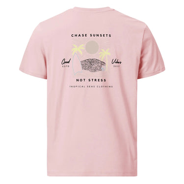 Camiseta de algodón orgánico Chase Sunsets, Not Stress