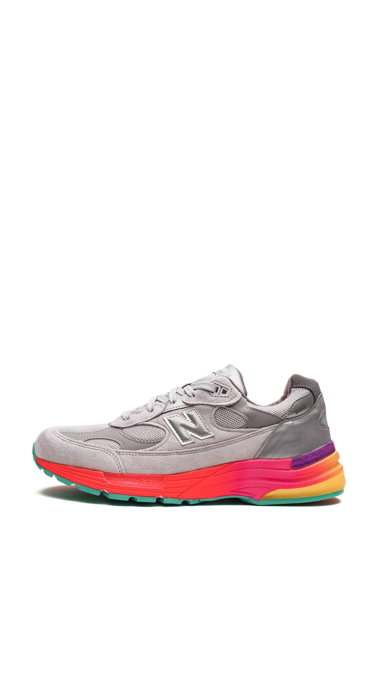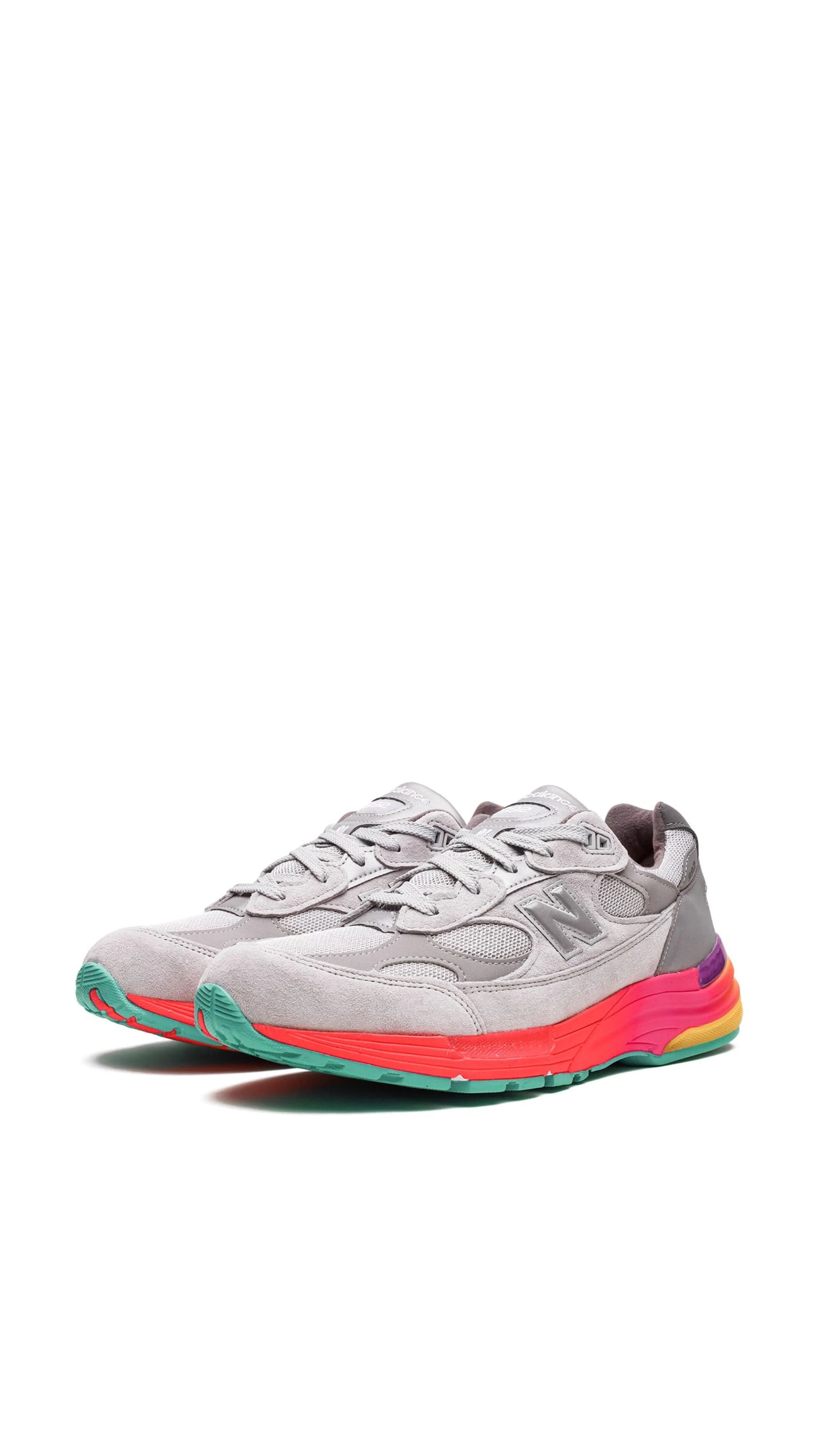 These 992 Made in USA sneakers from New Balance boast a retro-inspired upper juxtaposed with a fresh and youthful colour scheme. Constructed with suede and breathable mesh panelling in a light grey hue, the pair is elevated by a striking rainbow-like rubber outsole.