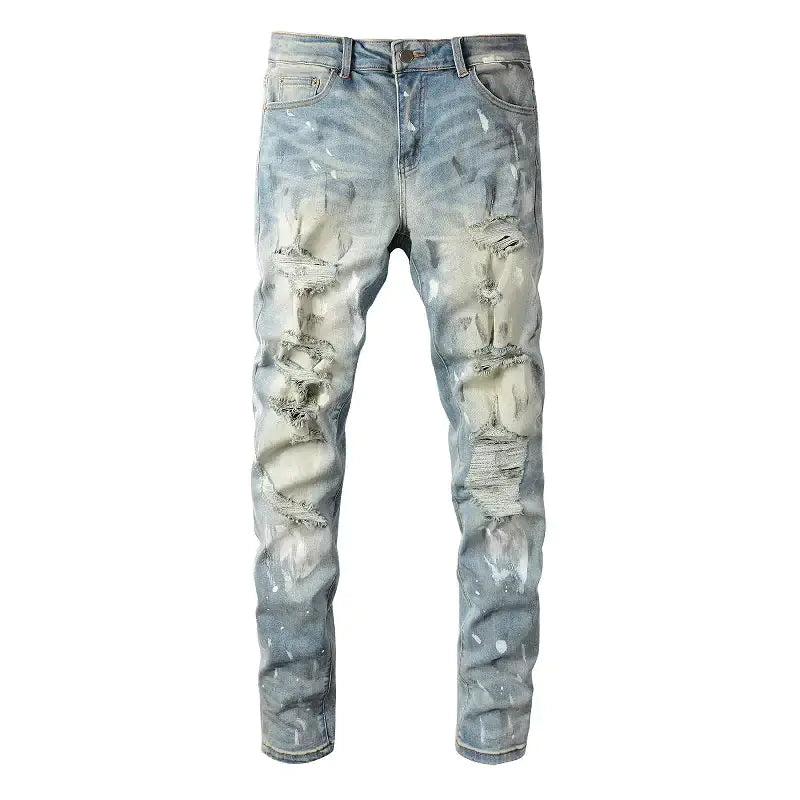Sal con confianza con estos jeans de patchwork con agujeros de cristal. Los deslumbrantes adornos de cristales y el moderno diseño de patchwork hacen de estos jeans una verdadera declaración de moda. Te encantará cómo agregan un toque de glamour a cualquier atuendo, lo que garantiza que te destaques entre la multitud.