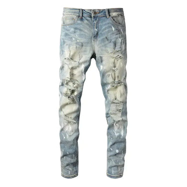Mejora tu guardarropa con estos jeans imprescindibles. Los detalles rotos y de parches le dan un toque vanguardista que es perfecto para cualquier persona a la moda. Combínalos con tus blusas y accesorios favoritos para crear looks elegantes y sin esfuerzo que reflejen tu estilo personal.