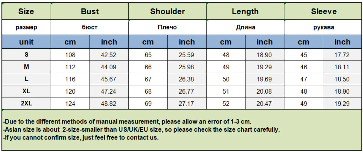 Nota: 1. Las tallas asiáticas son de 1 a 2 tallas más pequeñas que las europeas y americanas. Elige la talla más grande si tu talla está entre dos tallas. Por favor, permite diferencias de 2-3 cm debido a la medición manual. 2. Consulta la tabla de tallas cuidadosamente antes de comprar el artículo. Si no sabes cómo elegir la talla, ponte en contacto con nuestro servicio de atención al cliente. 3. Como sabes, las distintas computadoras muestran los colores de forma diferente, el color del artículo real puede variar ligeramente de las siguientes imágenes.