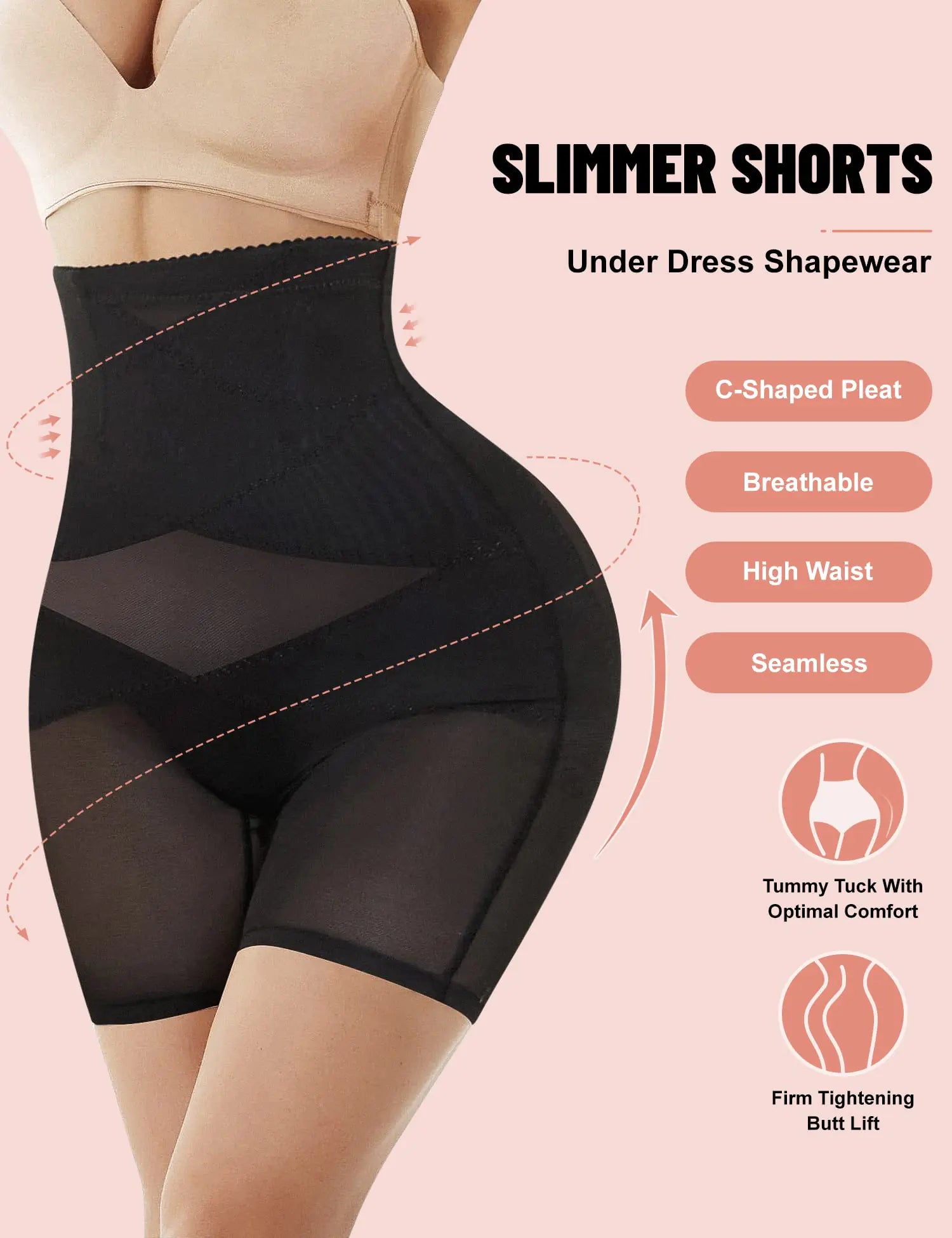 Faja moldeadora KLVEE para mujer, control de abdomen, pantalones cortos moldeadores de cintura alta, bragas levantadoras de glúteos, faja moldeadora para adelgazar los muslos