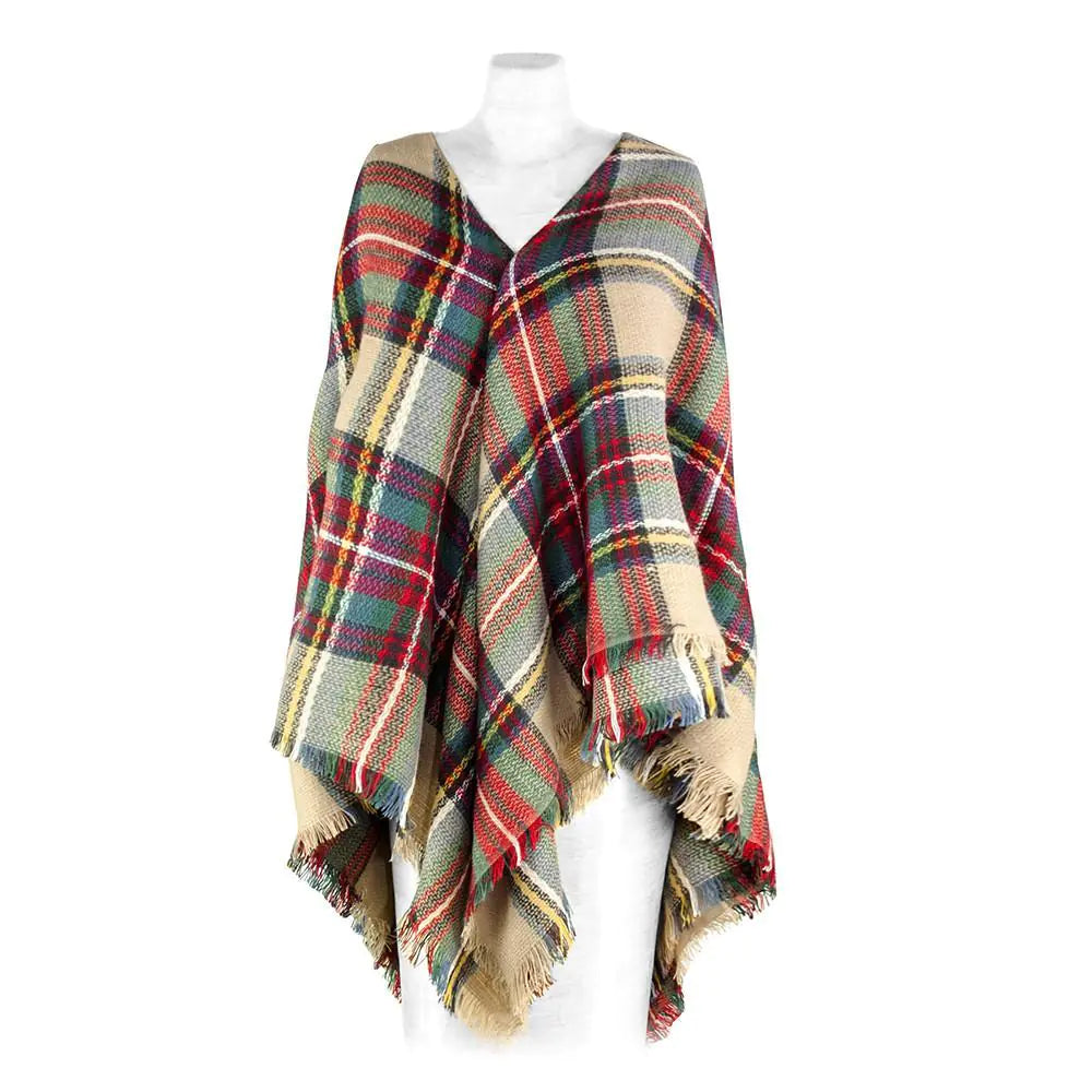 Un accesorio ideal para el día a día, esta ruana es acogedora y cálida con un elegante diseño de cuadros multicolor. Es una prenda imprescindible que le da el toque final a todo tu look para cualquier ocasión.