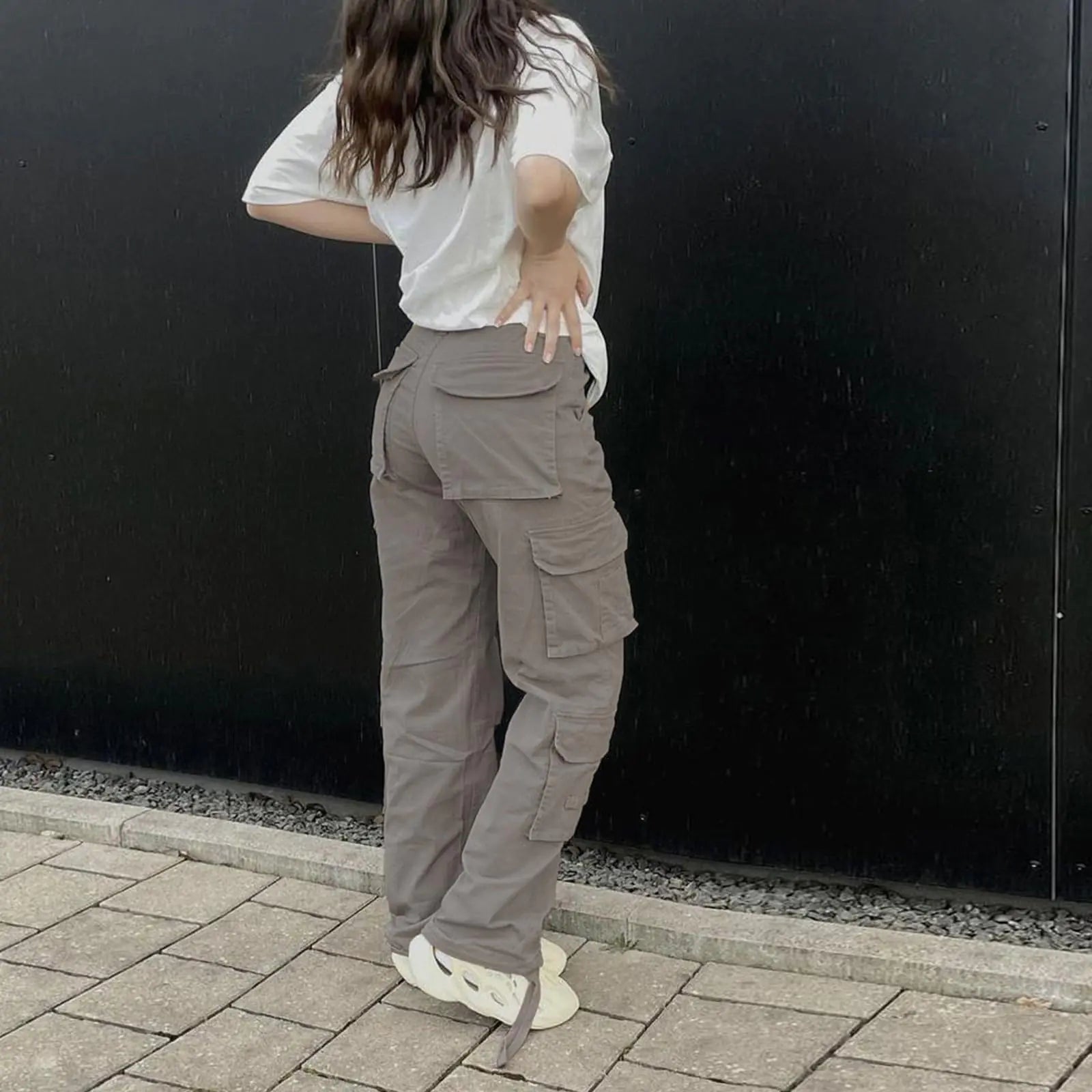 Pantalones cargo de cintura alta Viatabuna para mujer, pantalones holgados Y2k de pierna ancha y rectos con bolsillos, ropa de calle, gris oscuro mediano A
