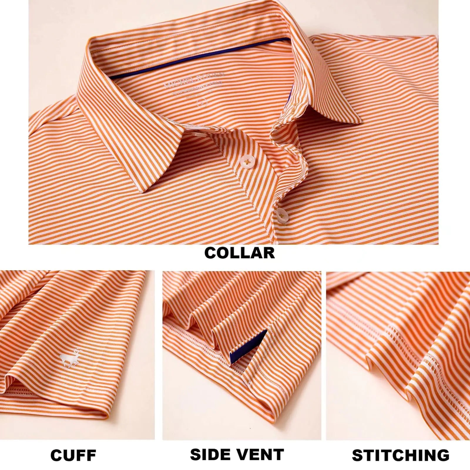 Mens Golf Shirt Moisture Wicking Dry Fit Performance Sport Short Sleeve Striped Golf Polo Shirts for Men Orange Stripe Large