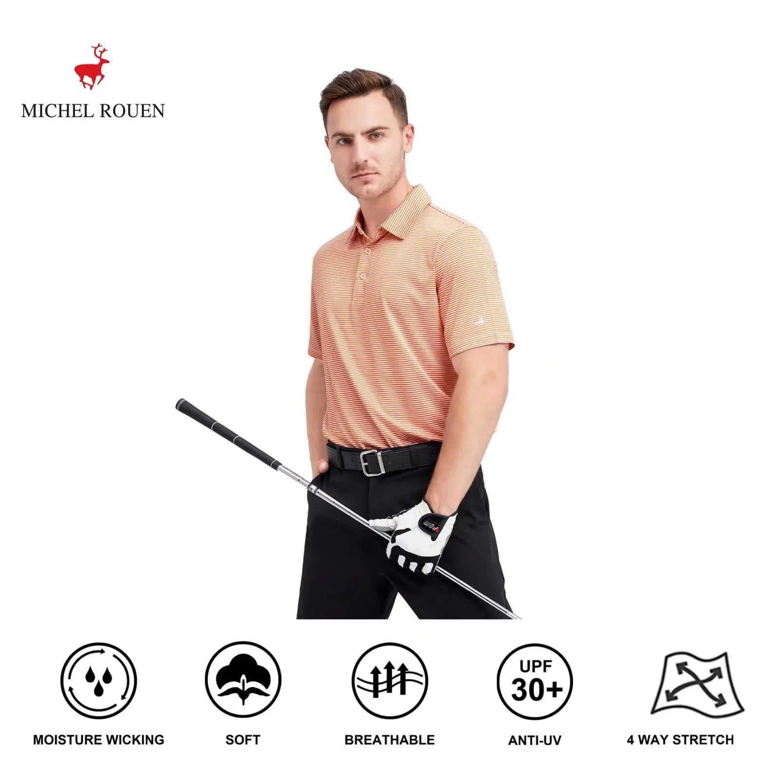 Mens Golf Shirt Moisture Wicking Dry Fit Performance Sport Short Sleeve Striped Golf Polo Shirts for Men