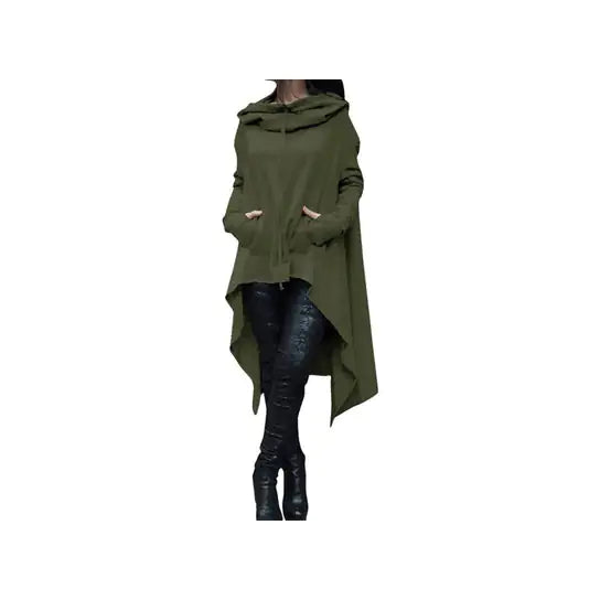 This is a wonderfully relaxed and relatively soft Cotton hooded cardigan, with a slightly bigger length for extra coziness and asymmetrical design for the style quotient ... It is created with a very soft Cotton which a drawstring hood and Kangaroo pockets not only to assures a comfortable feel but thealso give you that extra warmth for cold hands...